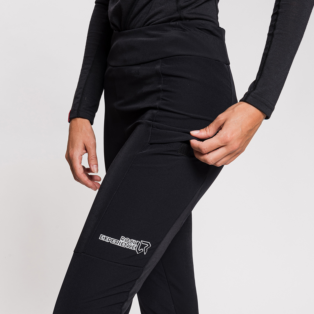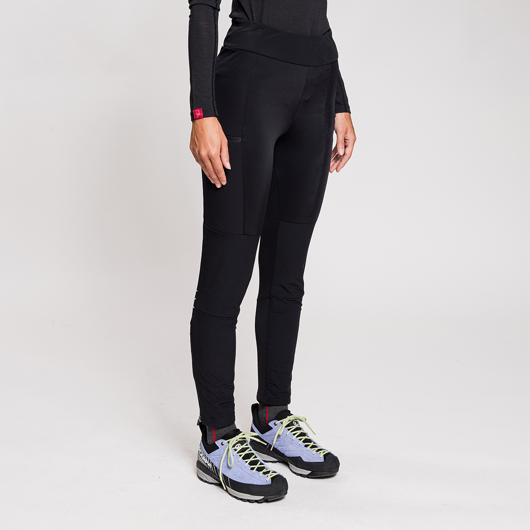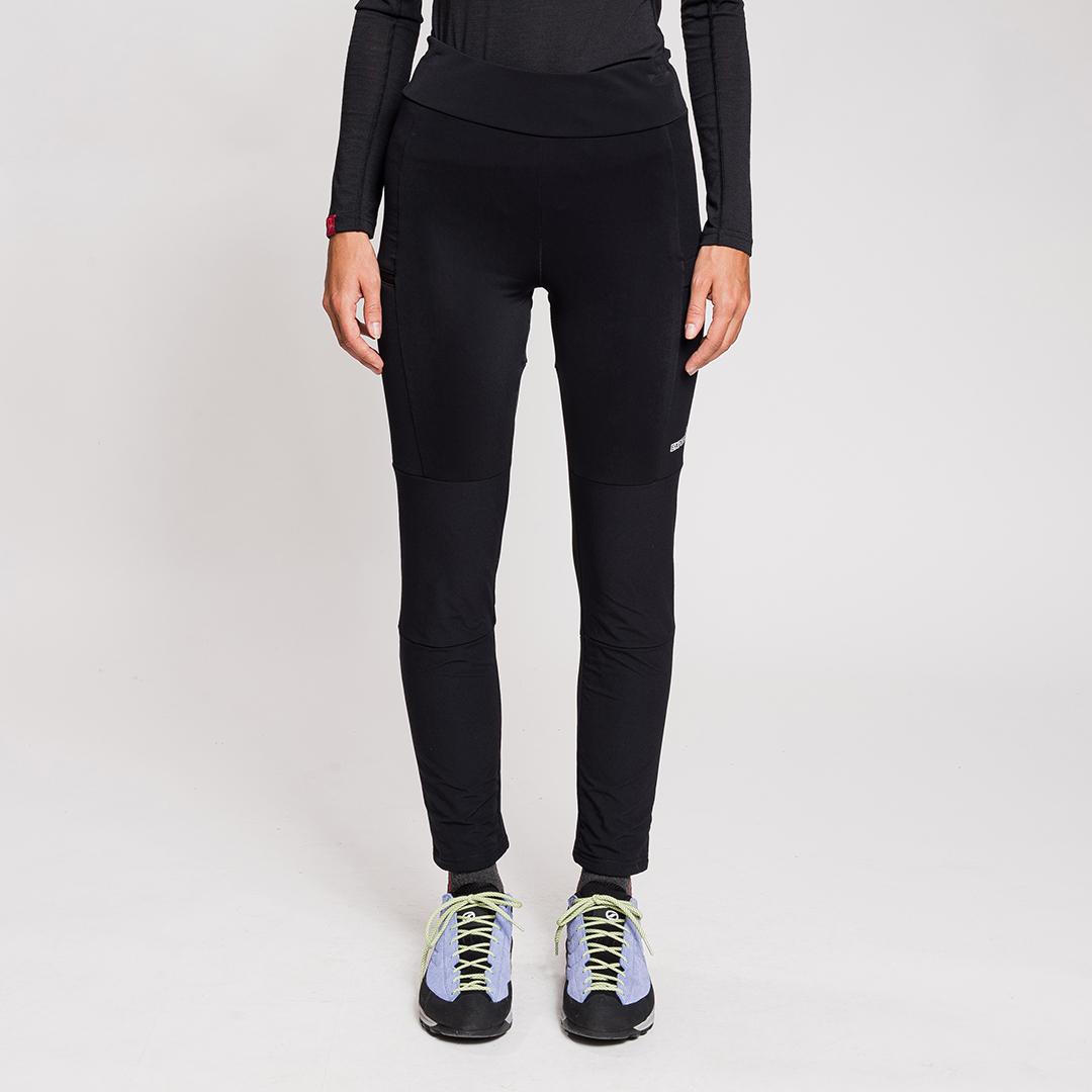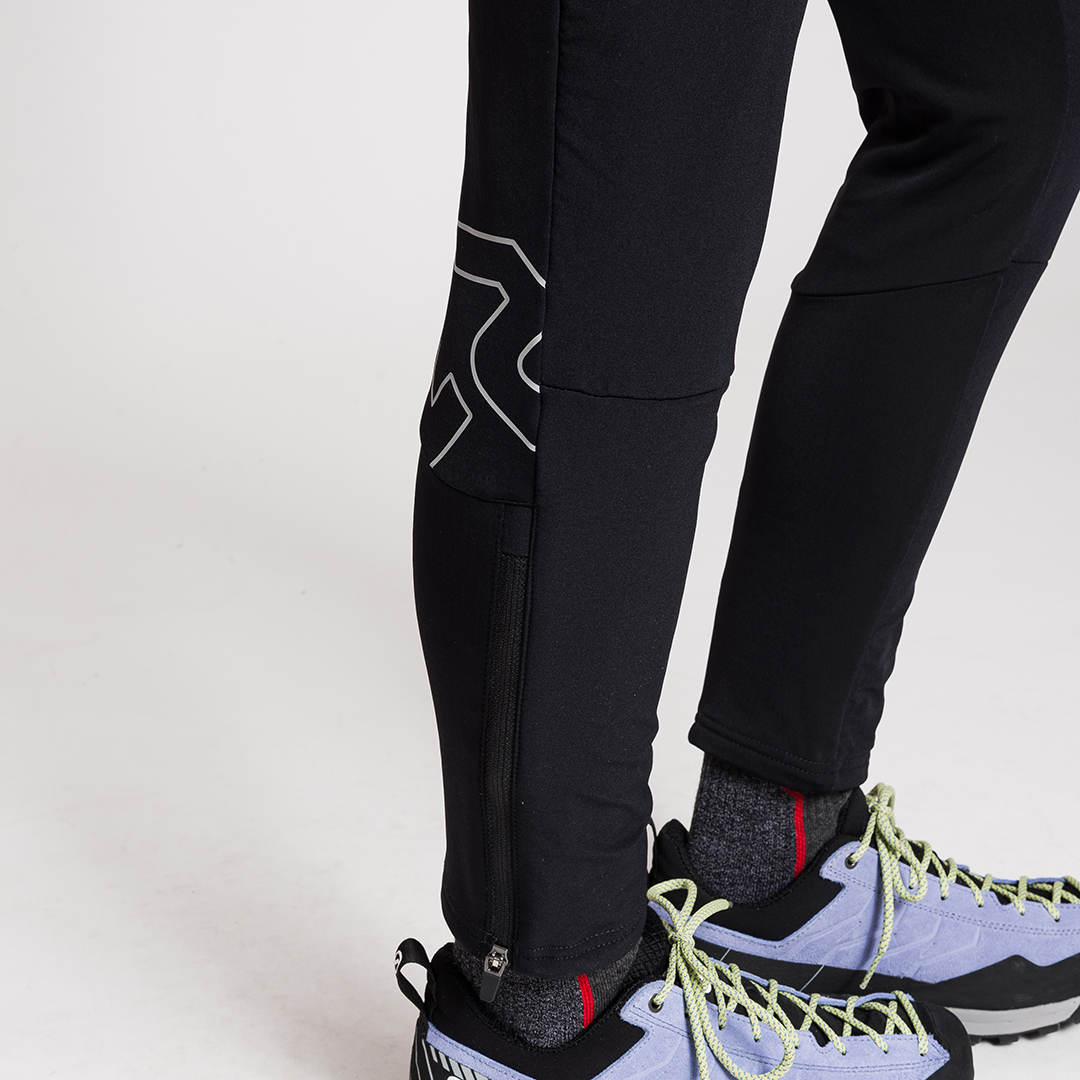 Xenix è un leggings tecnico ideale per le amanti del trekking invernale, dello sci di fondo e delle uscite sulla neve. Un leggings che unisce stile e tecnicità. Costruito secondo il concetto di body mapping, sovrappone uno strato di nylon stretch sulla parte anteriore della gamba e sul fondoschiena alla base di lycra garzata, rendendo il pantalone più resistente nelle zone soggette a usura e garantendo maggiore protezione. Dalla vestibilità aderente, Xenix è super confortevole e piacevole da indossare. Presenta regolazione in vita con coulisse interna e apertura del fondo gamba con zip per adattarsi a diversi tipi di calzature, dalle scarpette da fondo agli scarponi da trekking. Completa il capo una tasca con zip sulla gamba destra per chiavi o oggetti di valore e una tasca con chiusura in velcro sulla gamba sinistra per gel o barrette facilmente accessibili.