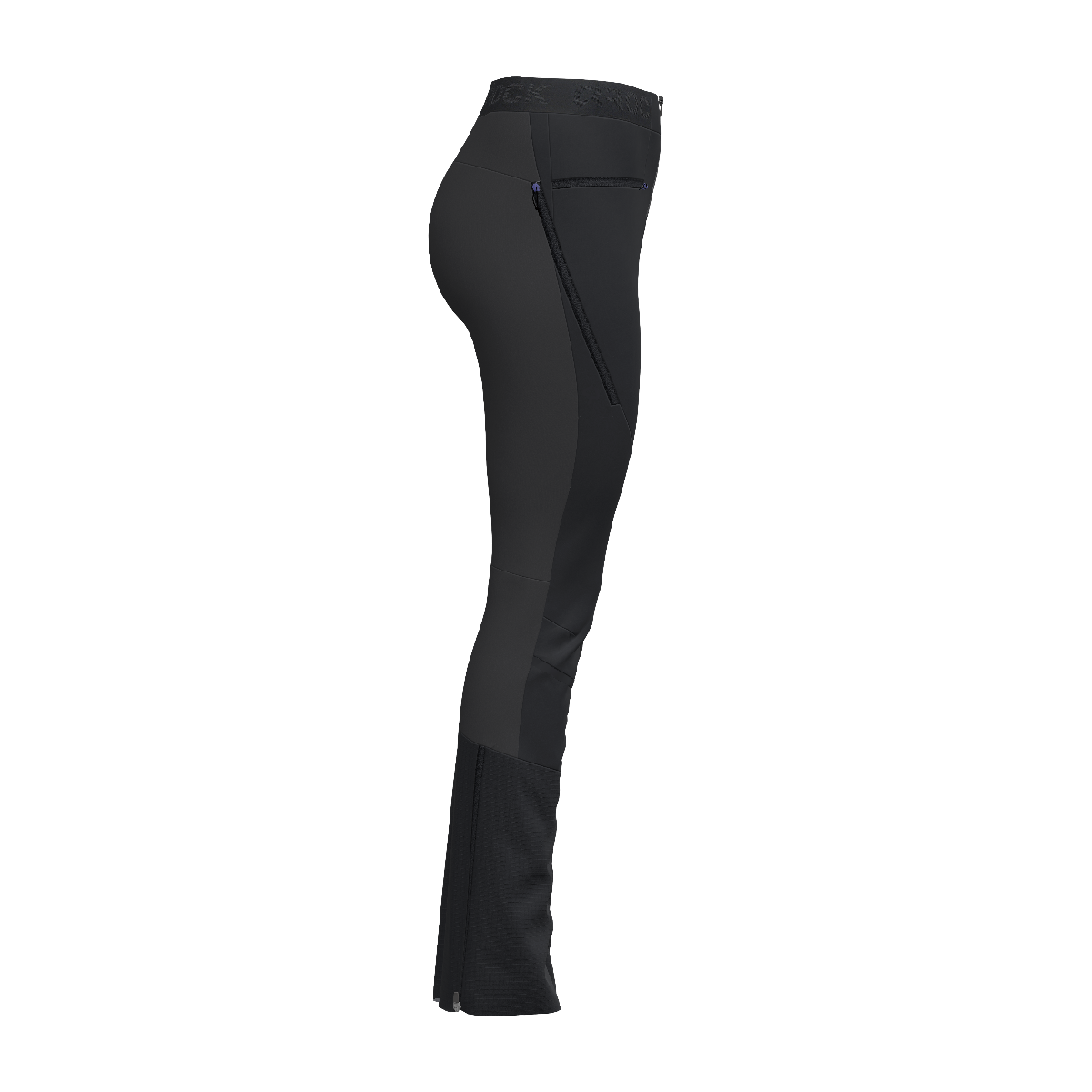 Il fondo gamba è stato invece ideato con un tessuto 3 strati ripstop, in quanto è la parte più soggetta ad abrasioni con eventuali lamine e ramponi e quella più a contatto con la superficie nevosa o con il ghiaccio. Le elevate performance sia in termini di impermeabilità (colonna d'acqua di 10.000 mm) e traspirabilità (10.000 g/m²/24h) di questo tessuto abbinato all’apertura a soffietto sul fondo gamba con elastico grippato, evitano che neve, acqua e umidità entrino spiacevolmente in contatto con gambaletto dello scarpone e piede.