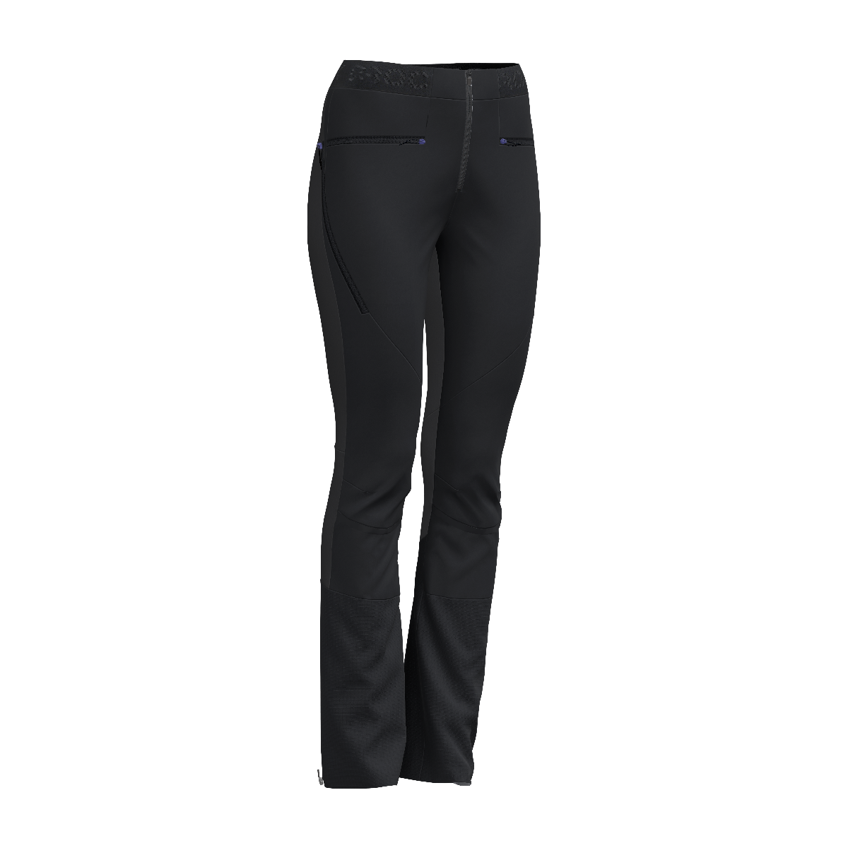 Il risultato si trova nell’utilizzo di un tessuto due strati sulla gamba anteriore applicato sopra lycra garzata che compone anche il retro del pantalone e un tessuto 3L 10K/10K. Il tessuto due strati WR (Water Repellent) protegge da vento e neve soprattutto durante la fase di discesa lasciando calda la gamba mentre la lycra garzata conferisce estrema elasticità e libertà di movimento e assicura un’elevata traspirazione durante gli sforzi più intensi della salita.