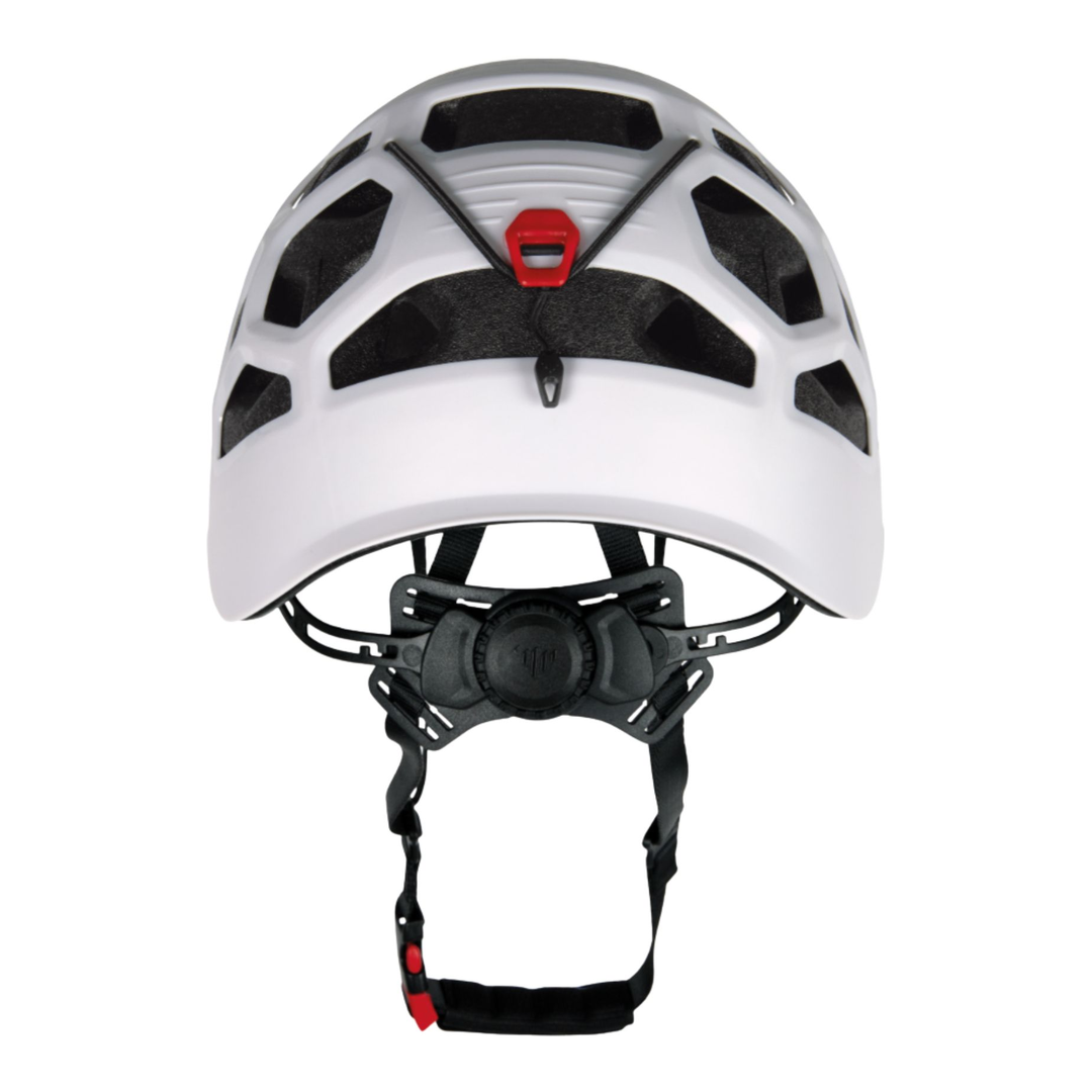 Casco di nuova generazione che combina la protezione e la robustezza dei modelli hardshell con la leggerezza e la ventilazione di quelli in-mold. Il guscio in ABS è eccezionalmente resistente, caratterizzato da una costruzione a nervatura 3D in corrispondenza delle aperture di ventilazione a nido d’ape. Sono così incrementate robustezza e rigidità. La calotta interna in EPP con top in EPS si estende su tutta la superficie del guscio esterno. Presenta aperture di ventilazione traslate che si combinano con quelle del guscio e aumenta la protezione in caso di impatti laterali. Il sistema di regolazione, dotato di comoda rotella azionabile anche con una sola mano, è basculante per essere compattato all’interno del casco riposto nello zaino. Anche il portalampada, caratterizzato da 2 clip anteriori ed elastico posteriore, è all’insegna della funzionalità: pratico e veloce, è utilizzabile a casco indossato grazie al tiretto posteriore e all’invito nella parte anteriore del guscio, tra le 2 clip.