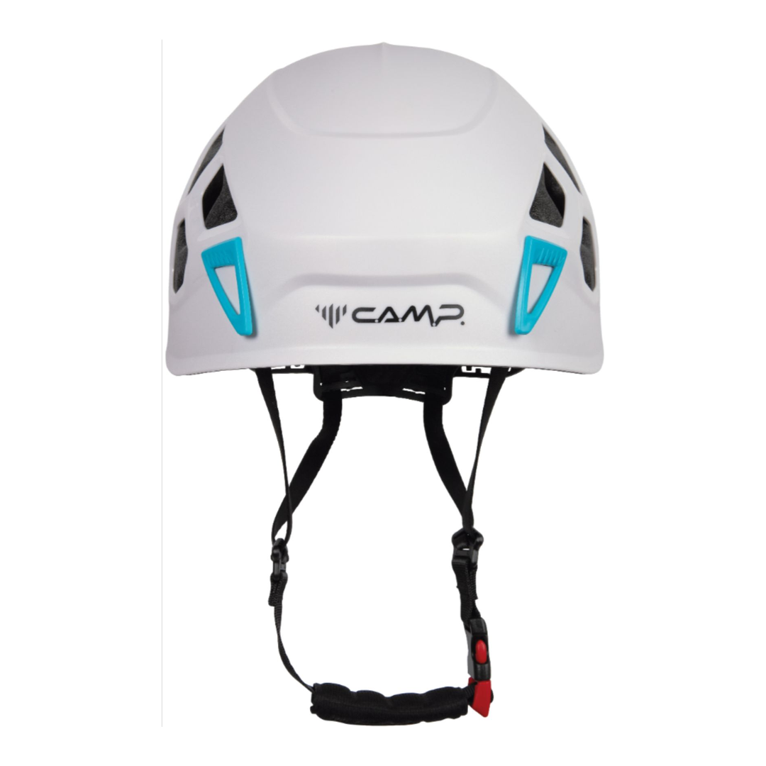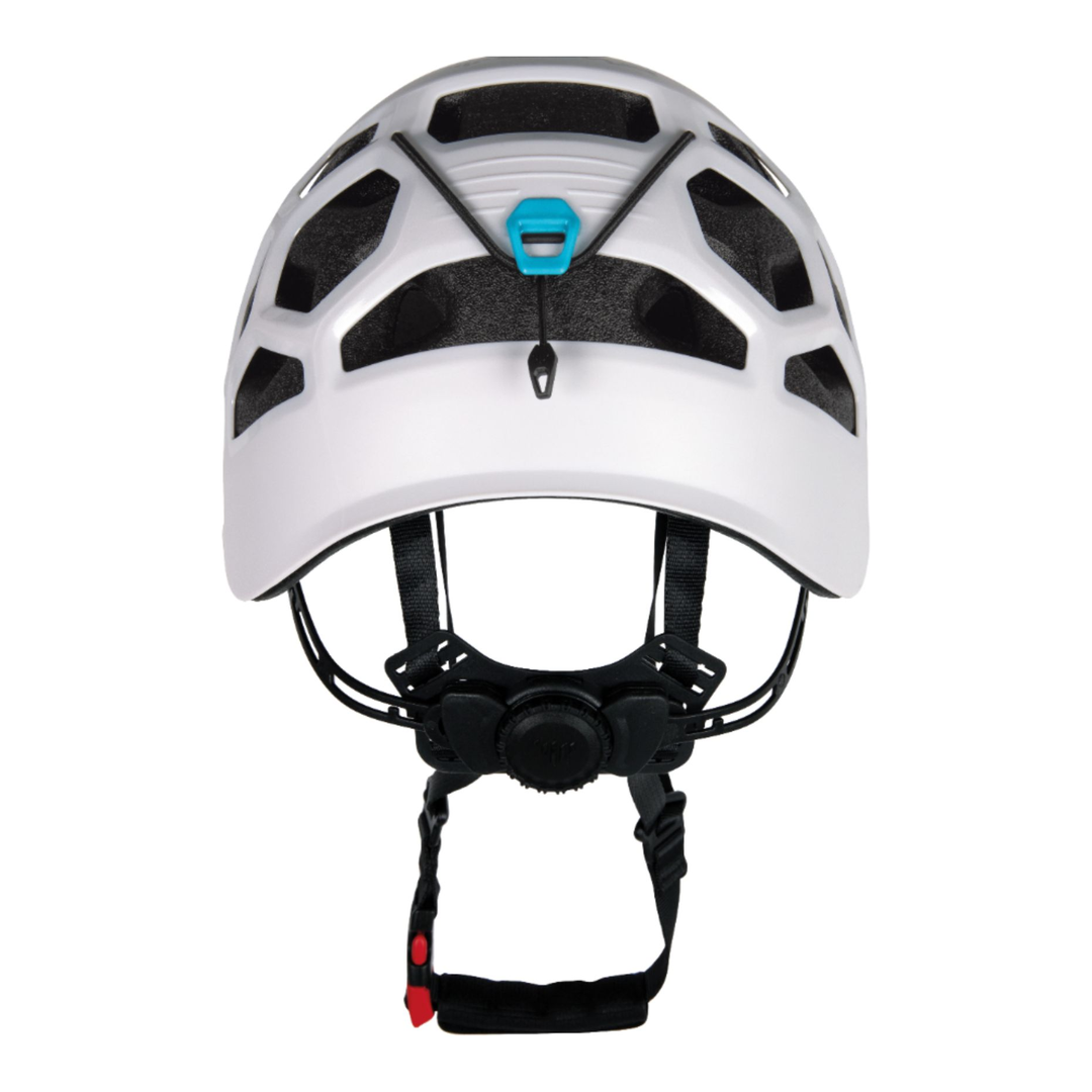Casco di nuova generazione che combina la protezione e la robustezza dei modelli hardshell con la leggerezza e la ventilazione di quelli in-mold. Il guscio in ABS è eccezionalmente resistente, caratterizzato da una costruzione a nervatura 3D in corrispondenza delle aperture di ventilazione a nido d’ape. Sono così incrementate robustezza e rigidità. La calotta interna in EPP con top in EPS si estende su tutta la superficie del guscio esterno. Presenta aperture di ventilazione traslate che si combinano con quelle del guscio e aumenta la protezione in caso di impatti laterali. Il sistema di regolazione, dotato di comoda rotella azionabile anche con una sola mano, è basculante per essere compattato all’interno del casco riposto nello zaino. Anche il portalampada, caratterizzato da 2 clip anteriori ed elastico posteriore, è all’insegna della funzionalità: pratico e veloce, è utilizzabile a casco indossato grazie al tiretto posteriore e all’invito nella parte anteriore del guscio, tra le 2 clip.
