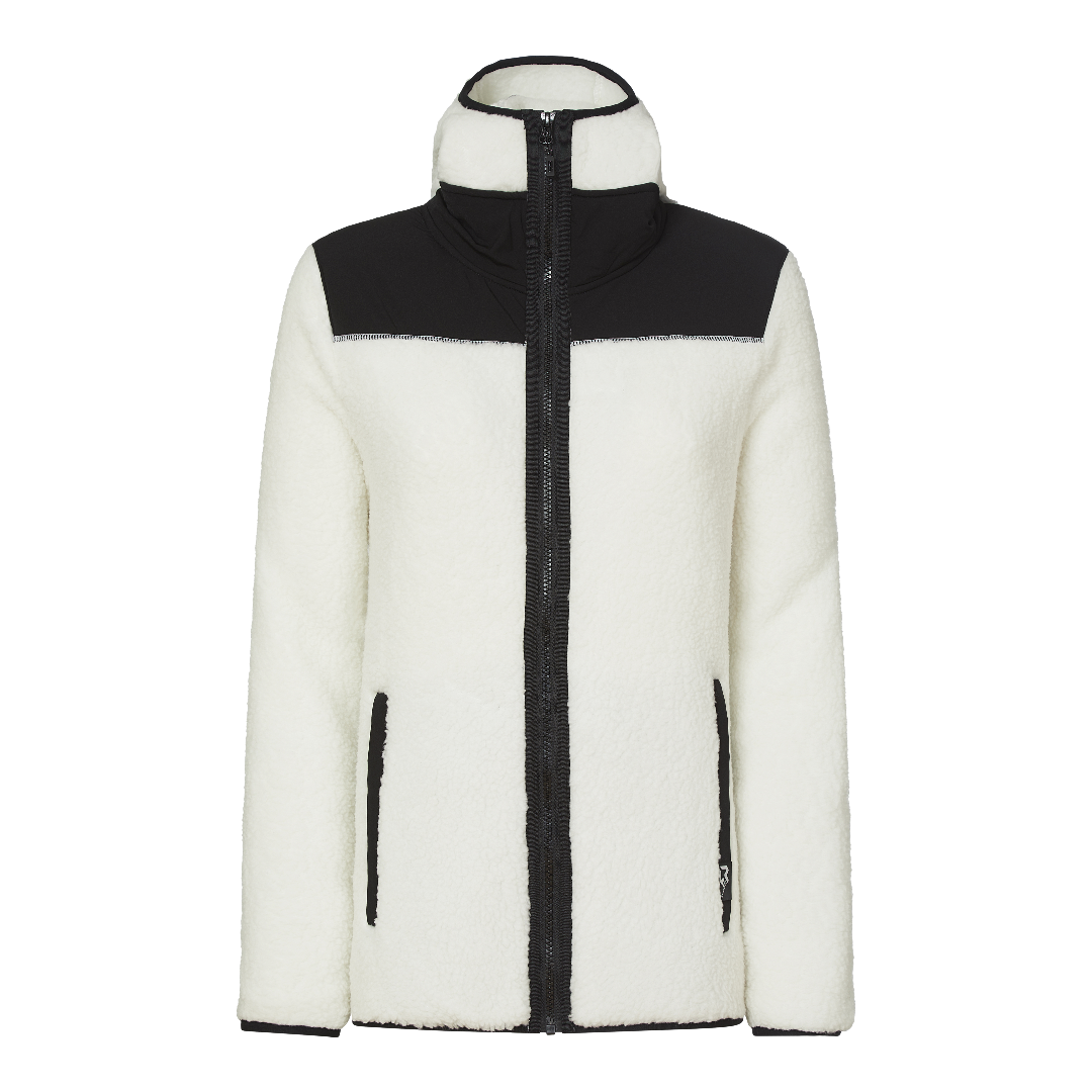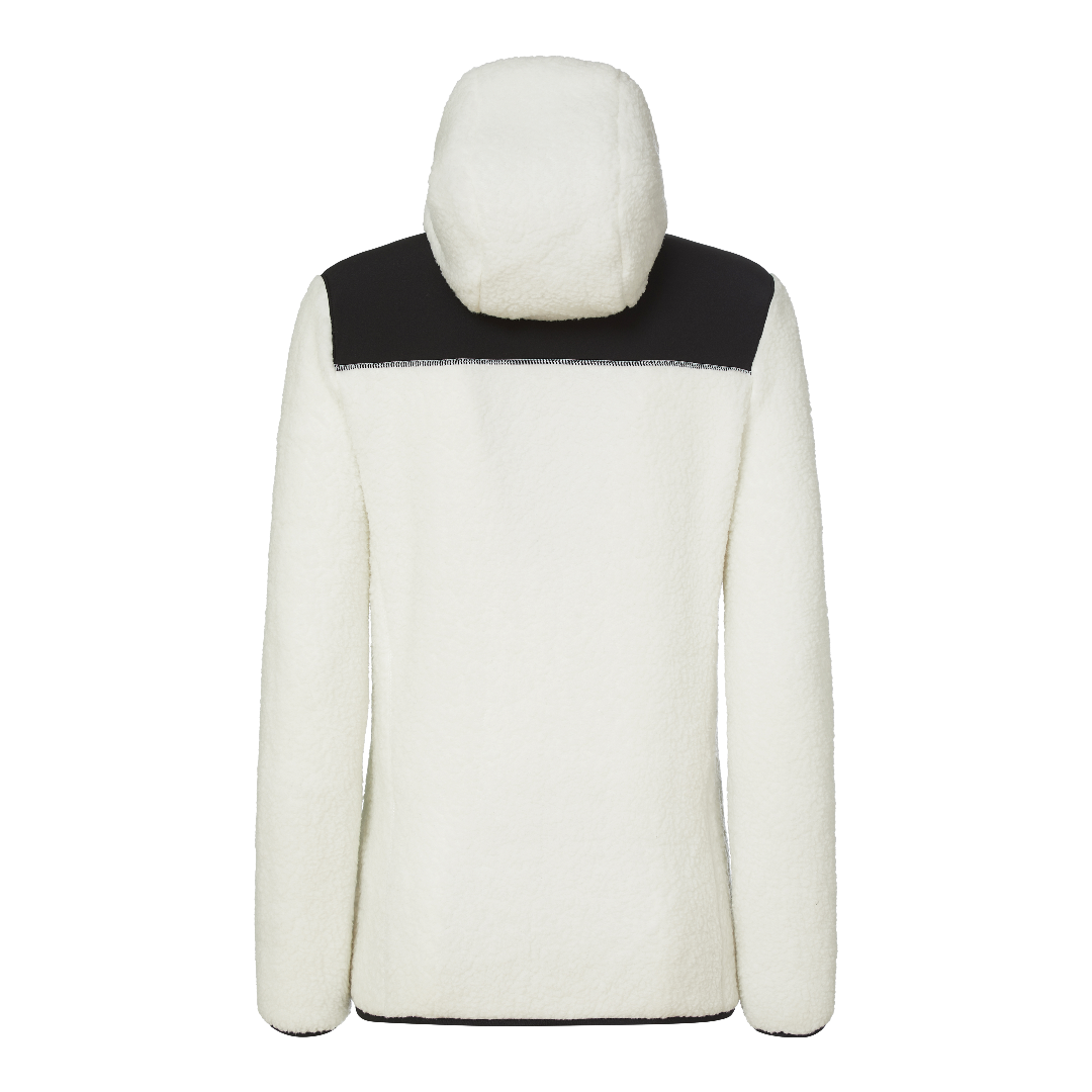 Pile sherpa vintage con rinforzo e tessuto tecnico antivento su collo e bordini delle tasche in vita. Nastro in lycra sui lati della zip principale, cappuccio, fondo capo e fondo manica. Cuciture piatte per evitare spessore lungo la cucitura. Personalizzazione con patch logo mountain.