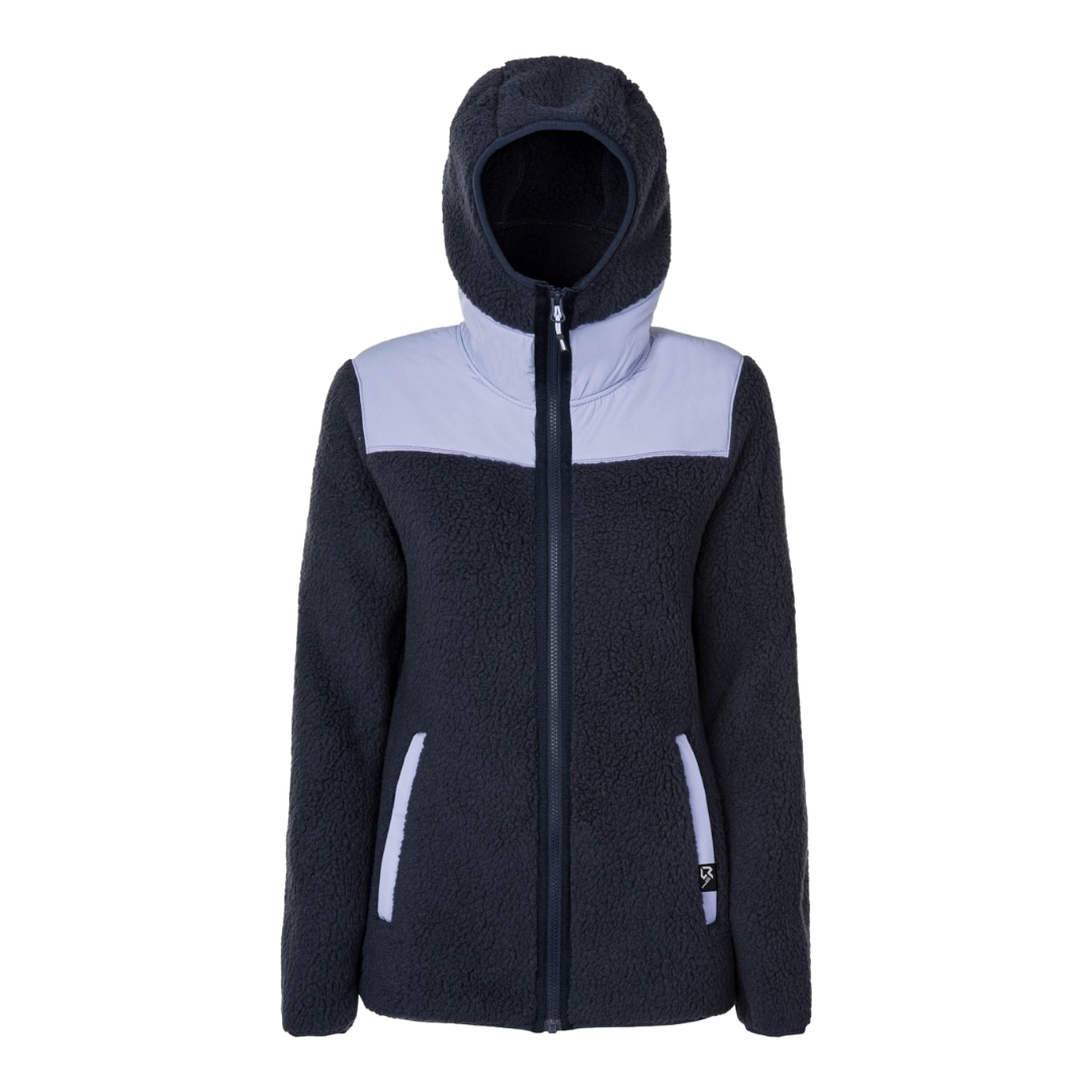 Pile sherpa vintage con rinforzo e tessuto tecnico antivento su collo e bordini delle tasche in vita. Nastro in lycra sui lati della zip principale, cappuccio, fondo capo e fondo manica. Cuciture piatte per evitare spessore lungo la cucitura. Personalizzazione con patch logo mountain.