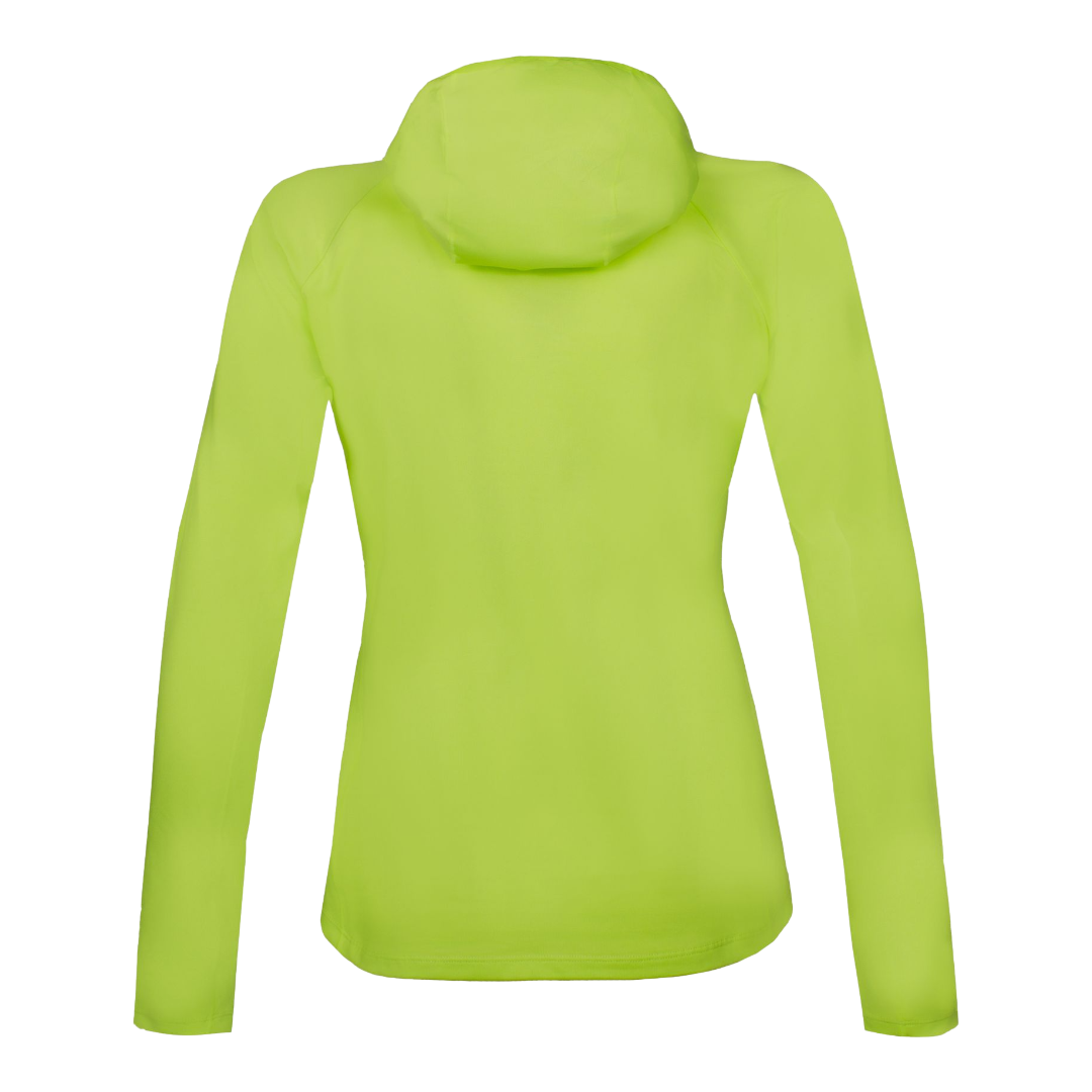 - Cappuccio integrato con nastro in lycra;