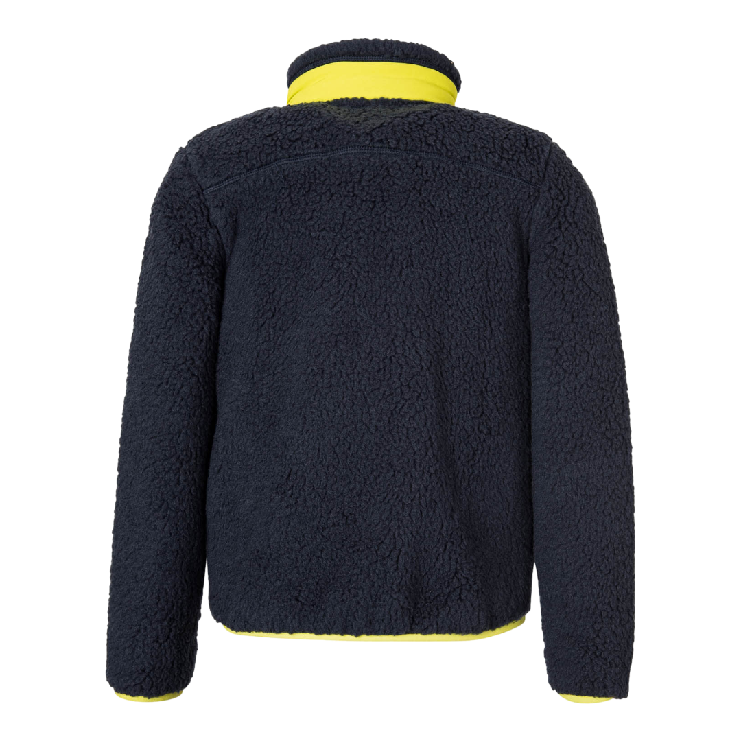 BEAVER è una felpa da bambino tecnica e resistente, progettata per garantire calore e protezione contro il vento. Il corpo è realizzato in morbido sherpa fleece vintage 100% poliestere, che assicura comfort e isolamento termico ottimali. Tasca sul petto e collo sono rinforzati con tessuto tecnico antivento per protezione extra. I dettagli in lycra su cerniere laterali, fondo e polsini assicurano una vestibilità aderente e confo