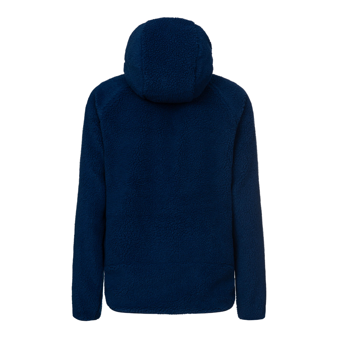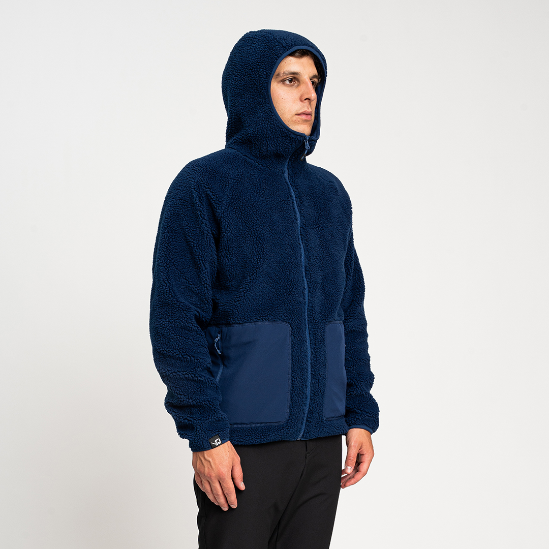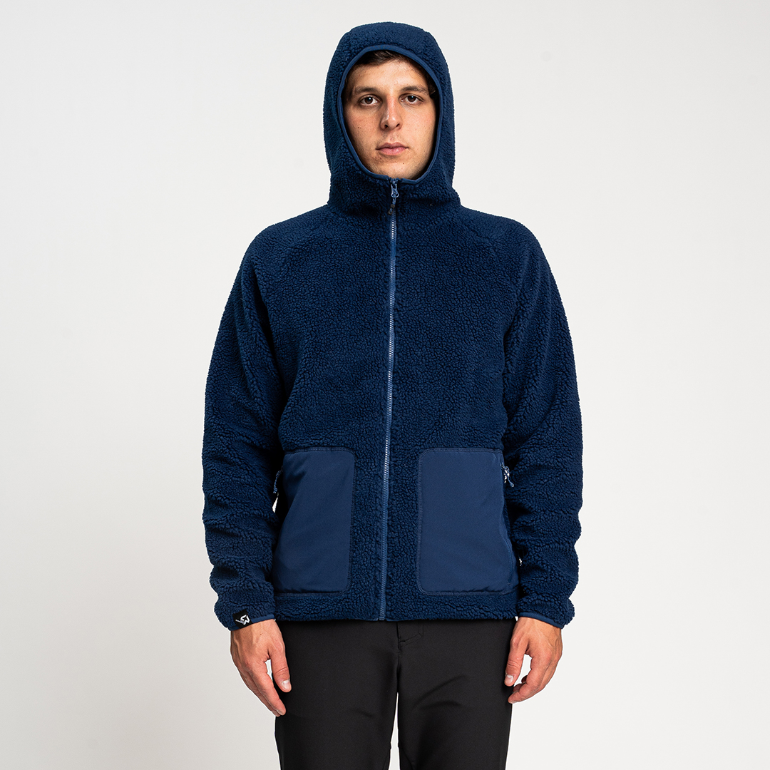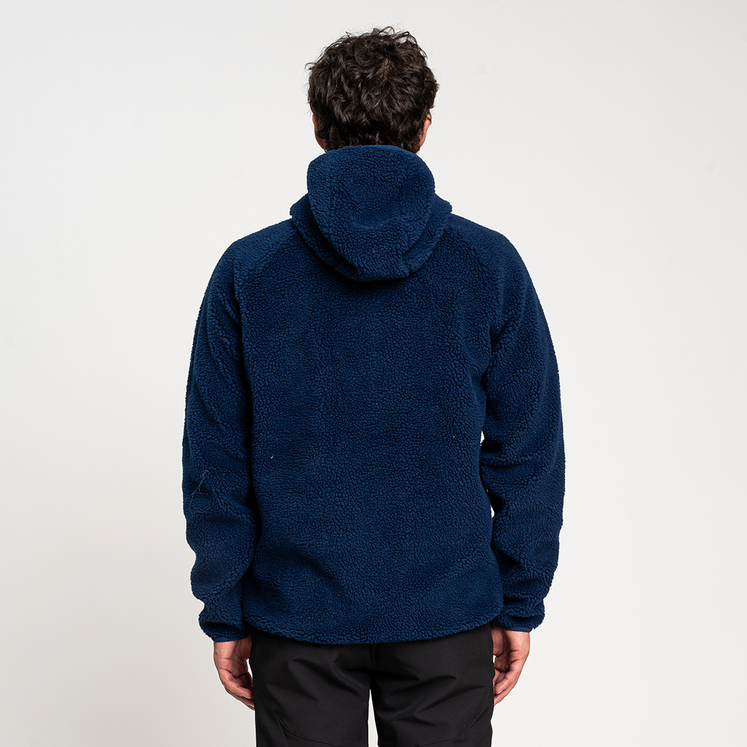 Re.Moose Pass è un pile sherpa riciclato dotato di nastro in lycra su cappuccio, fondo capo e fondo manica.