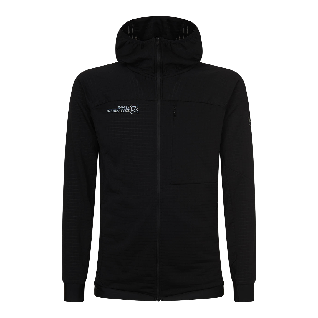 Reptile Hoodie Fleece è un pile tecnico con cappuccio full zip, dal peso medio, ideale per le attività ad alta intensità. Nella parte interna il tessuto presenta una struttura a quadretto grande che ottimizza la capacità termica di trattenere il calore e di far migrare verso l'esterno l'umidità. Il cappuccio avvolge in maniera ottimale il volto, sono presenti due tasche per le mani e una a petto. Orli in lycra elasticizzata.