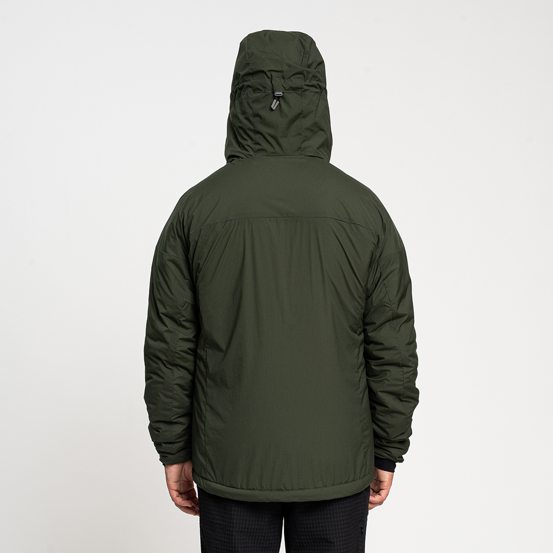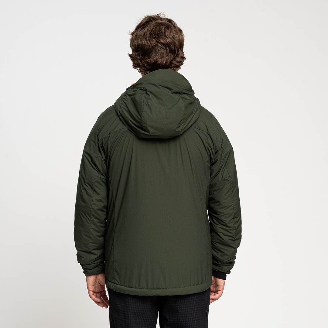La traspirabilità e la vestibilità comoda sono ulteriormente assicurate dalla mappatura del corpo dell'imbottitura: HolesNet, imbottitura in poliestere con perforazioni, utilizzata su maniche, pannelli laterali e cappuccio, consente la circolazione dell'aria.