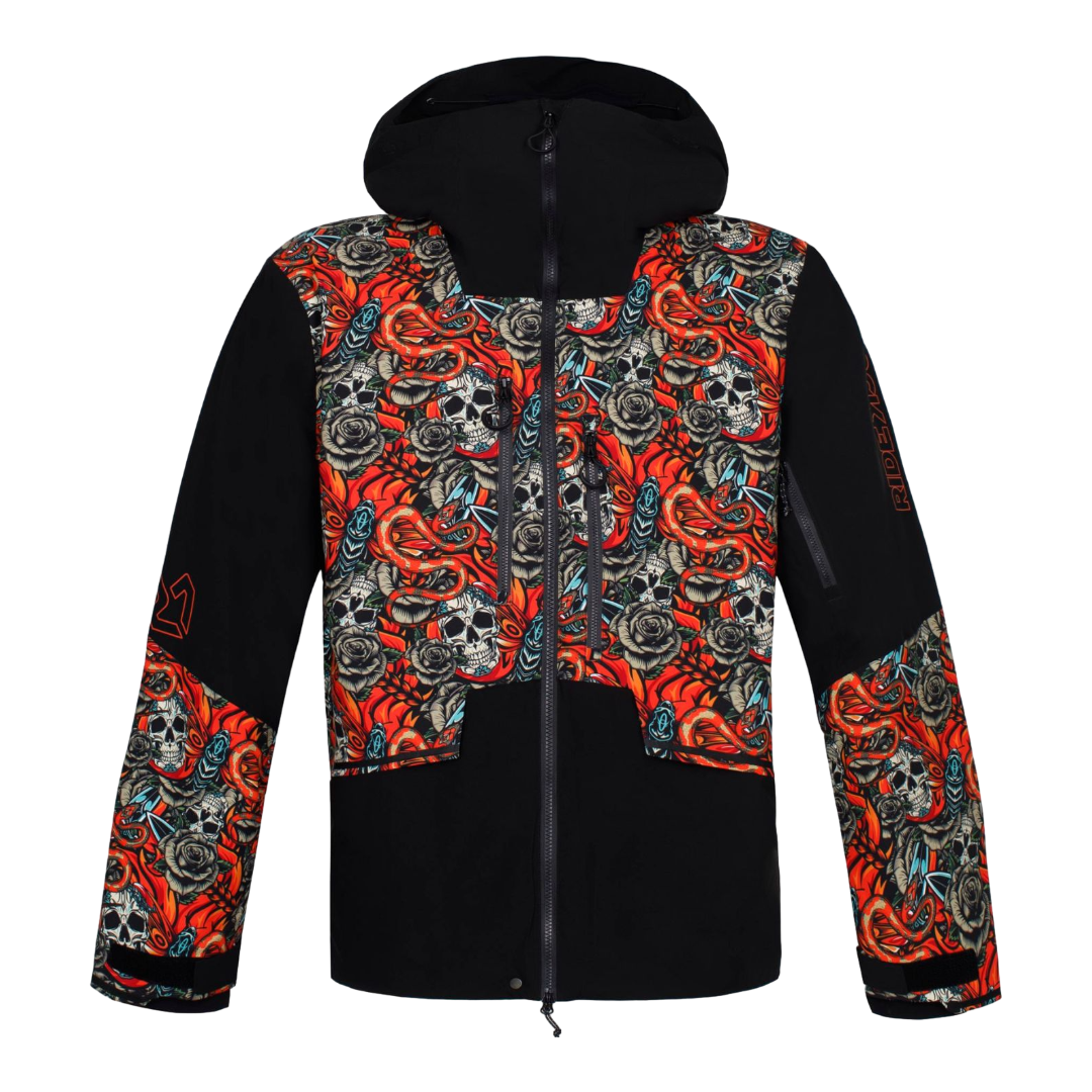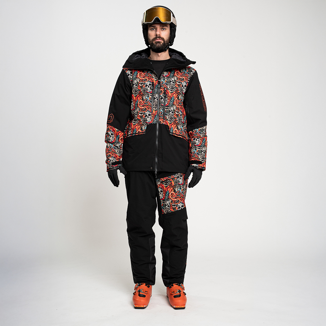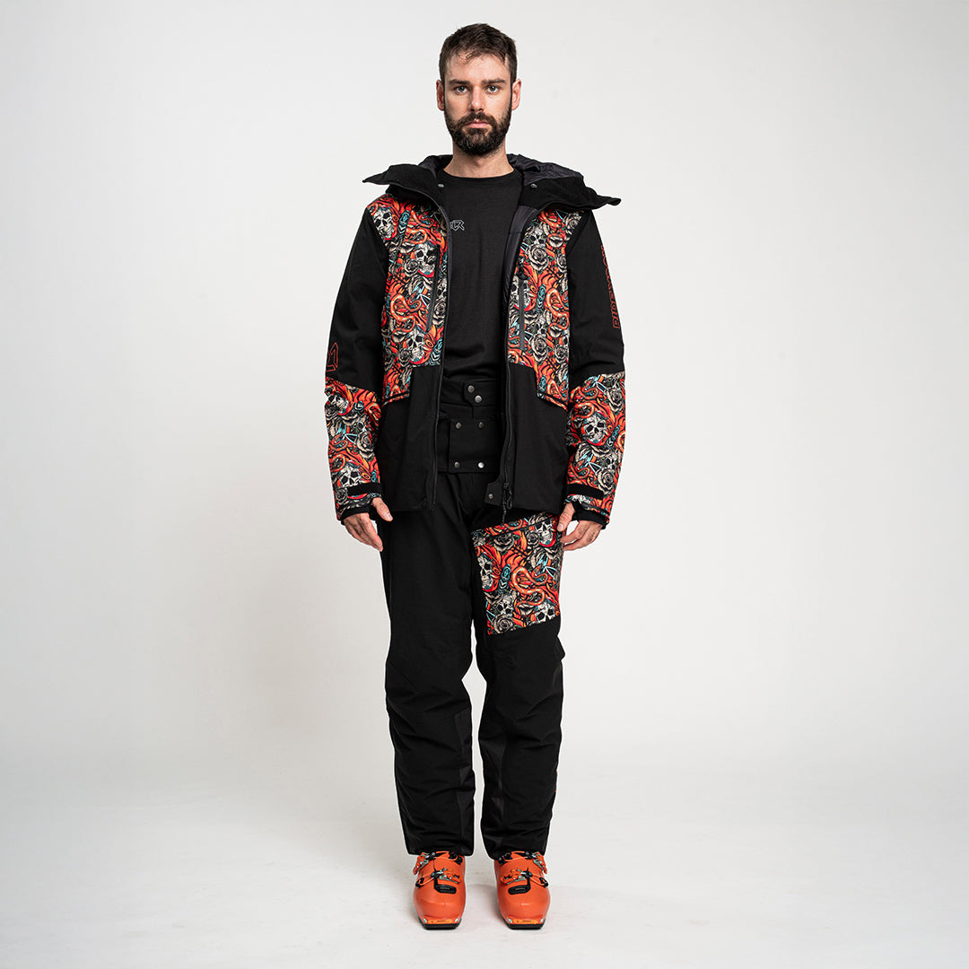 - Stampa all-over “teschi e serpenti” sul petto e sul fondo delle maniche