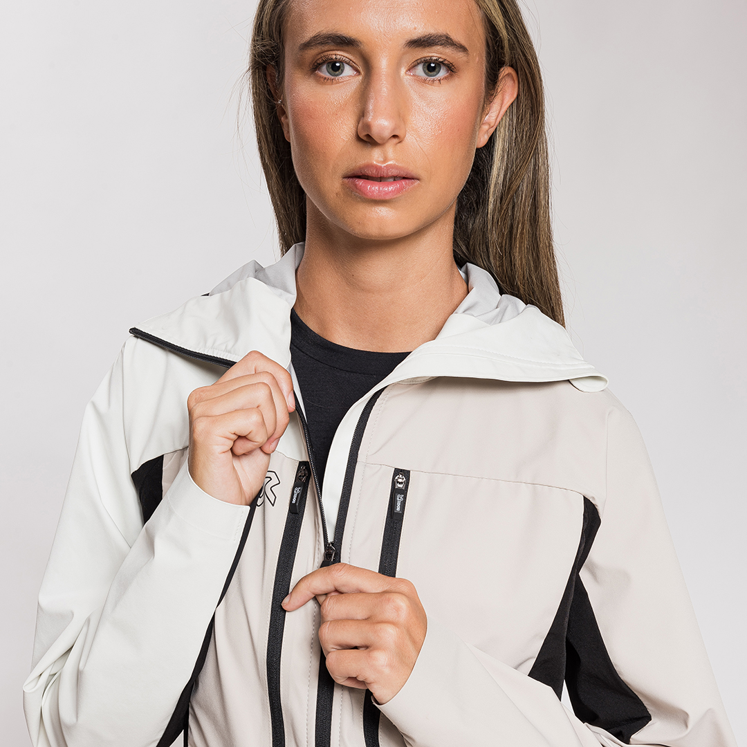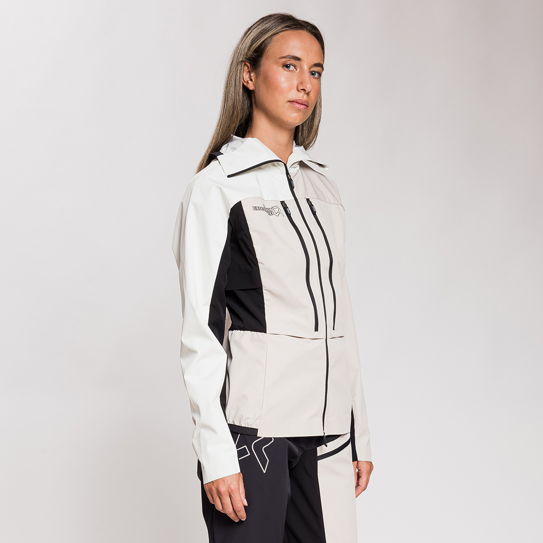 - Tessuto 1: Nylon stretch a 3 strati con membrana PU effetto latte e jersey singolo 20D, 10K/20K, PFC FREE – 88% PA, 12% EA, 137 g/m²