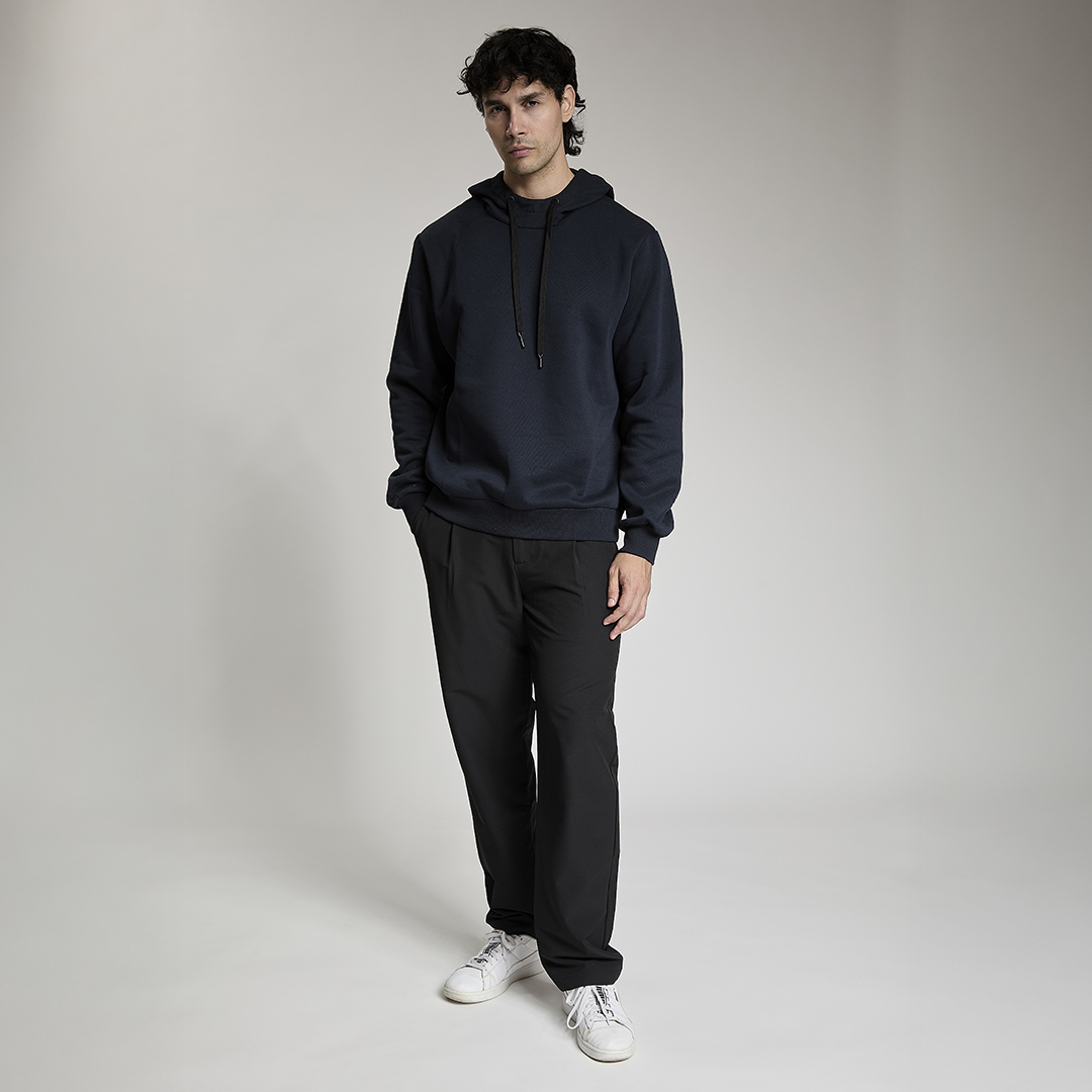 Felpa chiusa con cappuccio con cordino gommato per regolazione.
