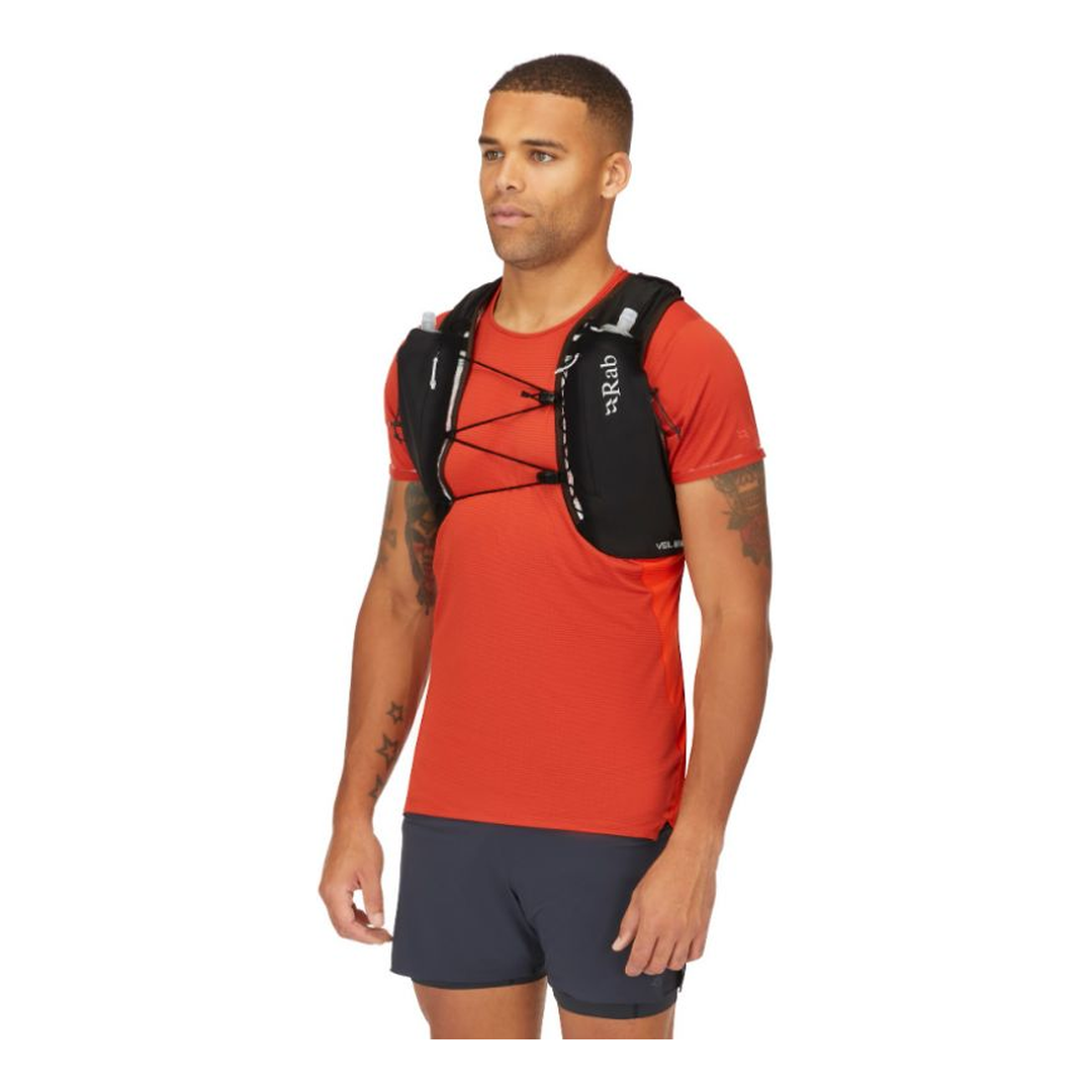 Leggero gilet da corsa in montagna da 12 litri con compatibilità per l'idratazione, accesso all'attrezzatura in movimento e ampio scomparto posteriore con cerniera, perfetto per riporre il kit extra necessario nelle corse più lunghe. Offre una vestibilità finemente regolata per garantire la stabilità su tutti i terreni.