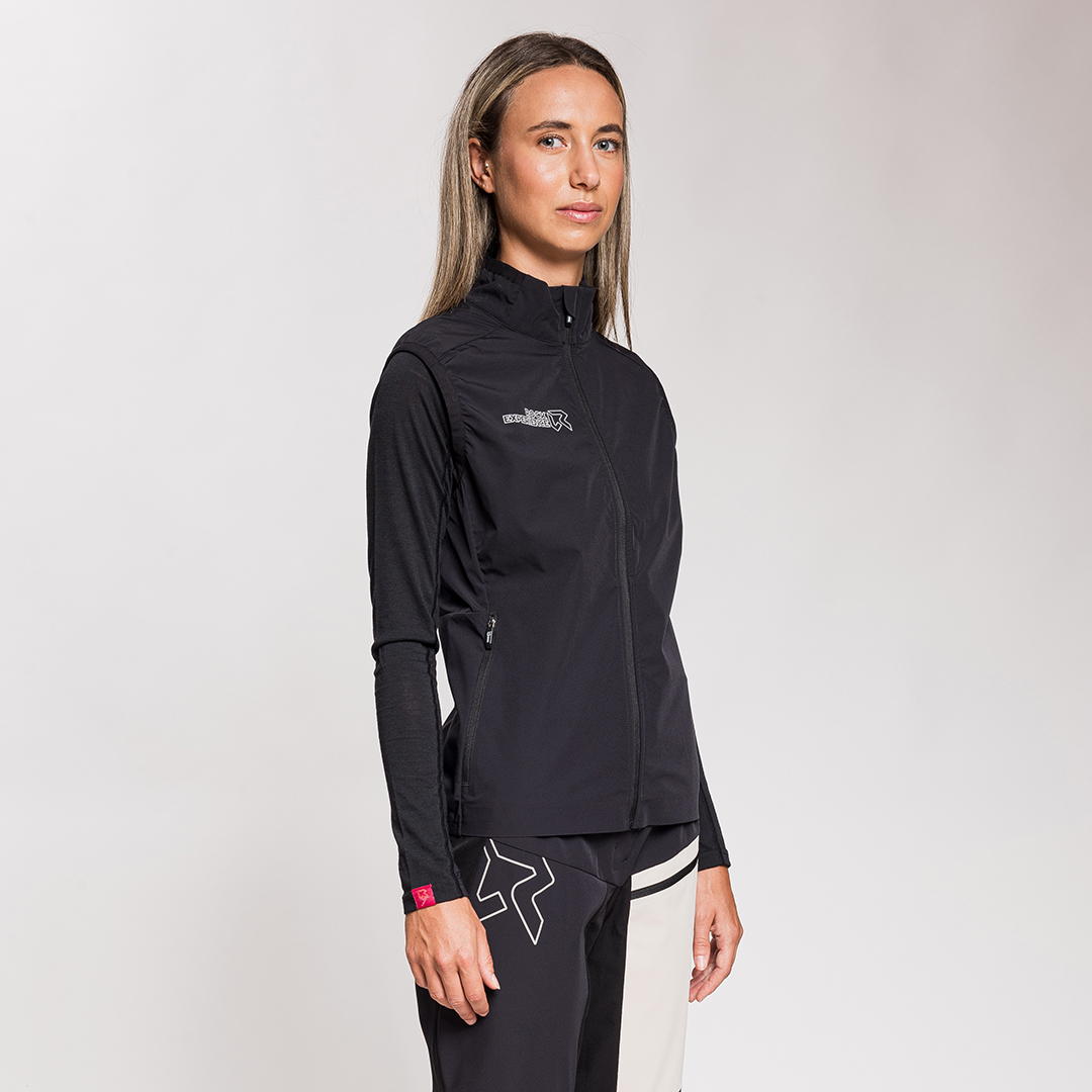 La zip, con un cursore autolock personalizzato, assicura una chiusura sicura durante le attività in movimento. La presenza di nastro in lycra lungo le asole delle braccia e sul fondo del capo contribuisce a una vestibilità confortevole senza restrizioni.