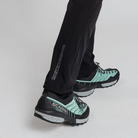 La vita è dotata di un cordino interno con fermo nascosto per una regolazione personalizzata, assicurando una vestibilità sicura e adattabile. La regolazione del fondo della gamba è leggera e compatta, grazie a un cordino elastico nascosto all'interno dell'orlo.
