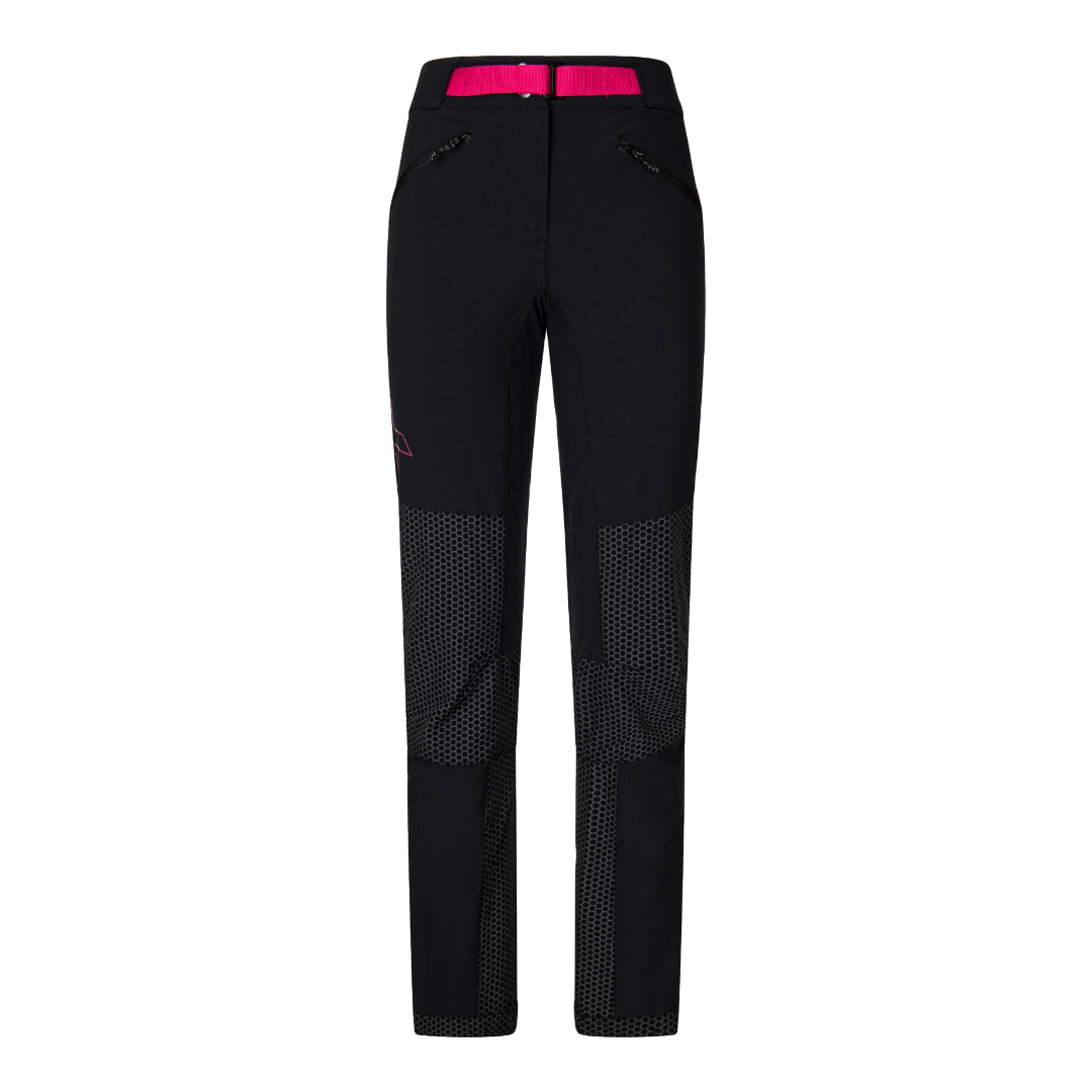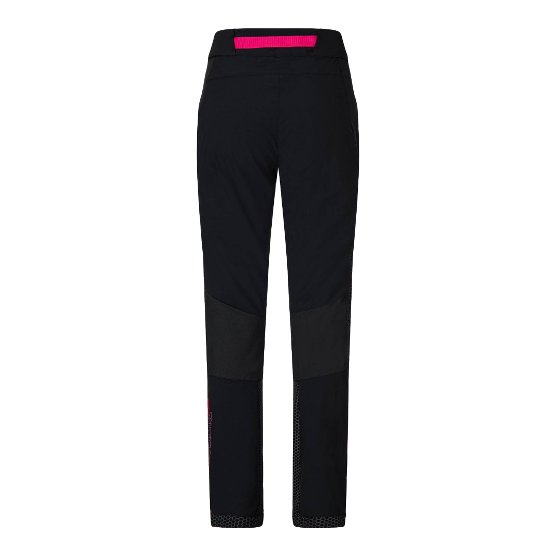 La cintura integrata in vita, foderata con mesh quick dry, è regolabile tramite gancio e daisy-chain. Il fondo pantalone ha un’apertura con zip a soffietto per adattarsi agli scarponi, mentre l’elastico interno con rivestimento in silicone evita che il pantalone si sollevi durante l’attività, prevenendo l’ingresso di neve e umidità.