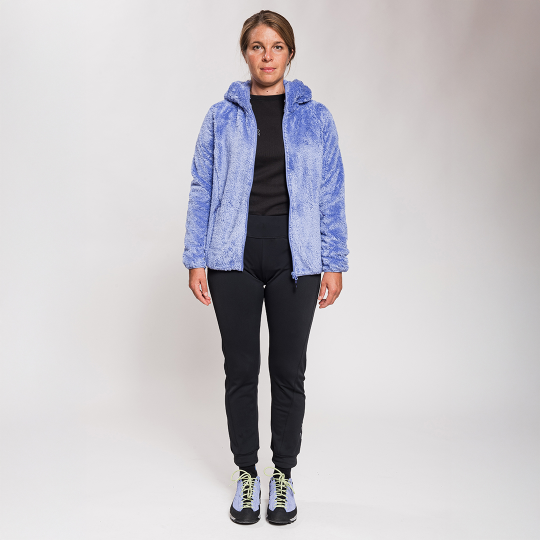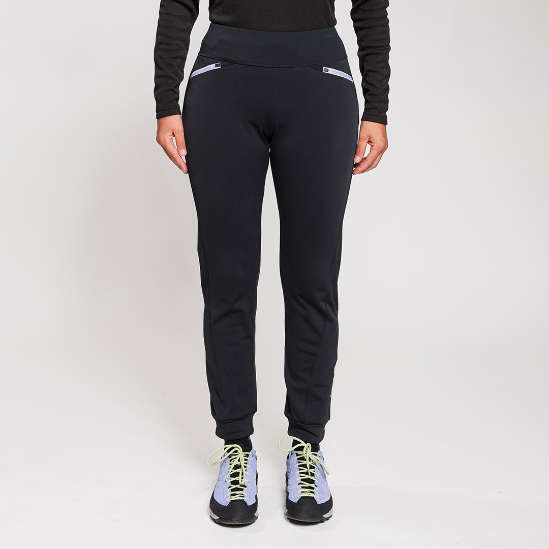Nina Pant sono pantaloni invernali da trekking. Hanno una vestibilità asciutta ma più morbida rispetto al leggings. Tessuto in lycra garzata, molto confortevole da indossare, buona capacità termica e di traspirazione. Vita a fascia elastica e due tasche sul davanti.