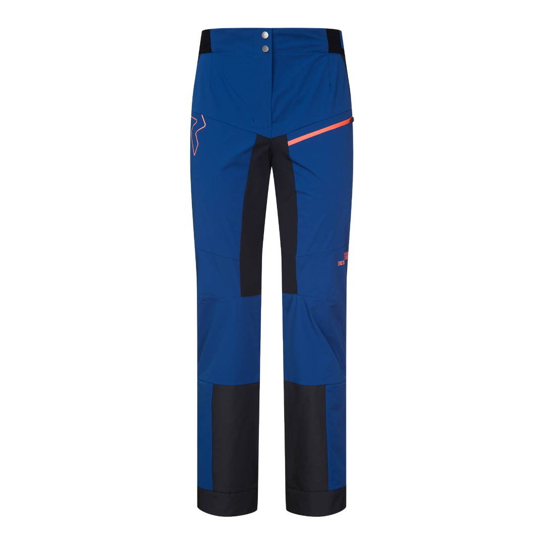 La parte inferiore delle gambe è rinforzata con tessuto resistente all’usura. Le ghette integrate, ridotte, hanno elastico interno per aderire perfettamente, mentre la patta inferiore ha due bottoni a pressione per adattarsi allo scarpone. Compatibili con bretelle.