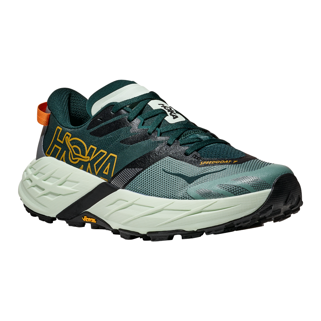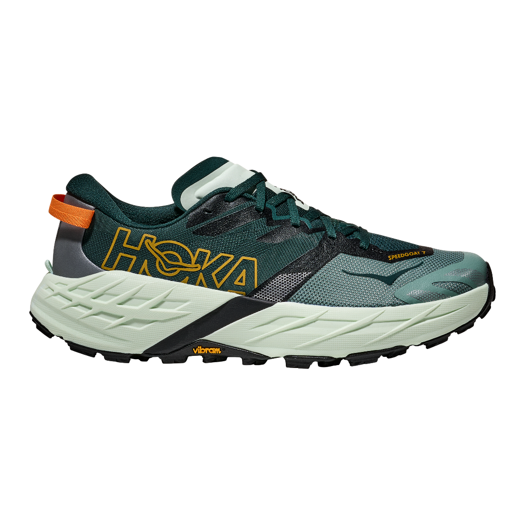 Esperienza d’uso ricca di aderenza e reattività per i terreni tecnici. Il meglio del meglio sul trail. Eccolo. Speedgoat 7 è nata per dominare i trail, grazie alla combinazione di comprovata ammortizzazione HOKA, trazione aggressiva e materiali ultraleggeri. Calzatura studiata per i terreni tecnici, questa recente riedizione presenta tomaia in tessuto traspirante, telaio interno che avvolge il piede, linguetta con doppio soffietto più morbida e orientamento del carrarmato ripensato prendendo spunto dallo zoccolo di una capra