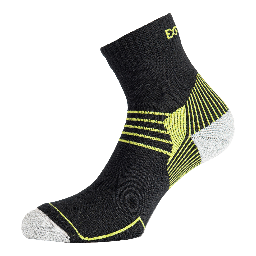 Calze da trail progettate con filato in poliestere che favorisce l’evaporazione del sudore e filato Nanoglide che previene la formazione di vesciche su tallone e punta, per massimo comfort durante la corsa su terreni impegnativi.
