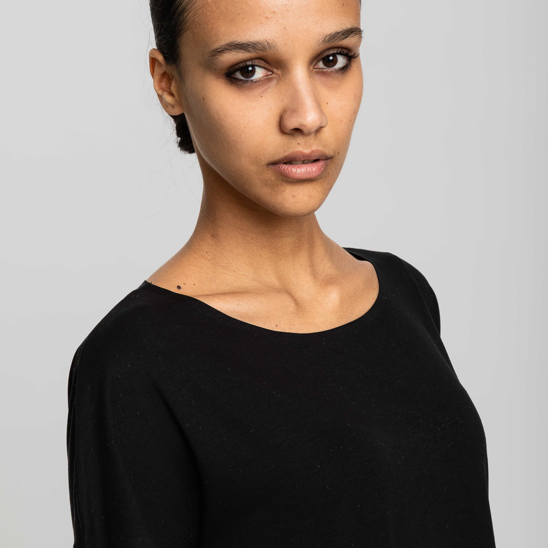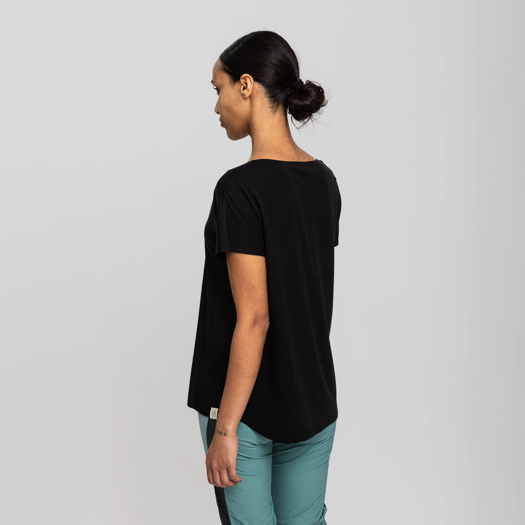 La T-shirt da donna Echo Wall è pensata per un'esperienza outdoor senza compromessi. Il suo concetto si basa sull'unione di fibre Tencel che garantiscono leggerezza ed estrema comodità. Con uno stile che abbraccia la libertà di movimento, il suo ampio scollo a barca e la vestibilità oversize la rendono un capo dinamico e versatile, ideale per avventure in montagna o momenti di relax.