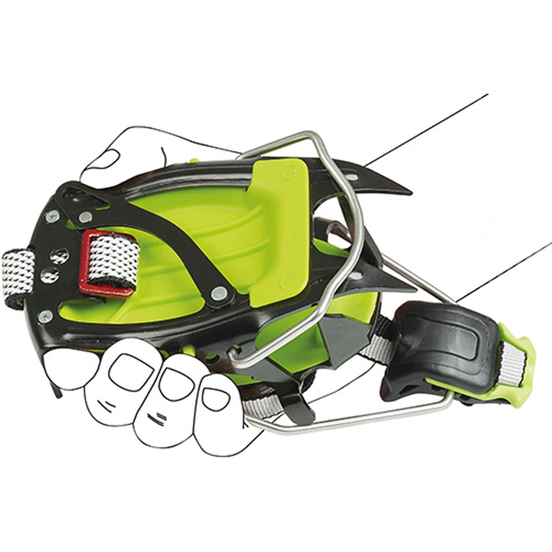 Rampone in acciaio a 10 punte. Il suo design minimalista permette una considerevole riduzione di peso senza interferire nelle prestazioni. La struttura compatta dell'Ascent è infatti particolarmente rigida, con punte aggressive che garantiscono notevole trazione e grande stabilità. La versatilità è assicurata dalla totale intercambiabilità dei sistemi di allacciatura: è infatti possibile passare dall'allacciatura automatica alla semiautomatica sostituendo l'archetto frontale con la cuffia inclusa nella confezione ed eventualmente all'allacciatura universale sostituendo la talloniera di serie con quella specifica disponibile separatamente. L'asta a doppia fila di fori consente una regolazione precisa e veloce della lunghezza, coprendo un range estremamente ampio. La perfetta calzata è garantita dalle molteplici regolazioni: l'archetto frontale e la talloniera su 2 posizioni e la leva posteriore su 3 posizioni. L'antibott ad azione attiva impedisce l'accumulo di neve tra le punte.