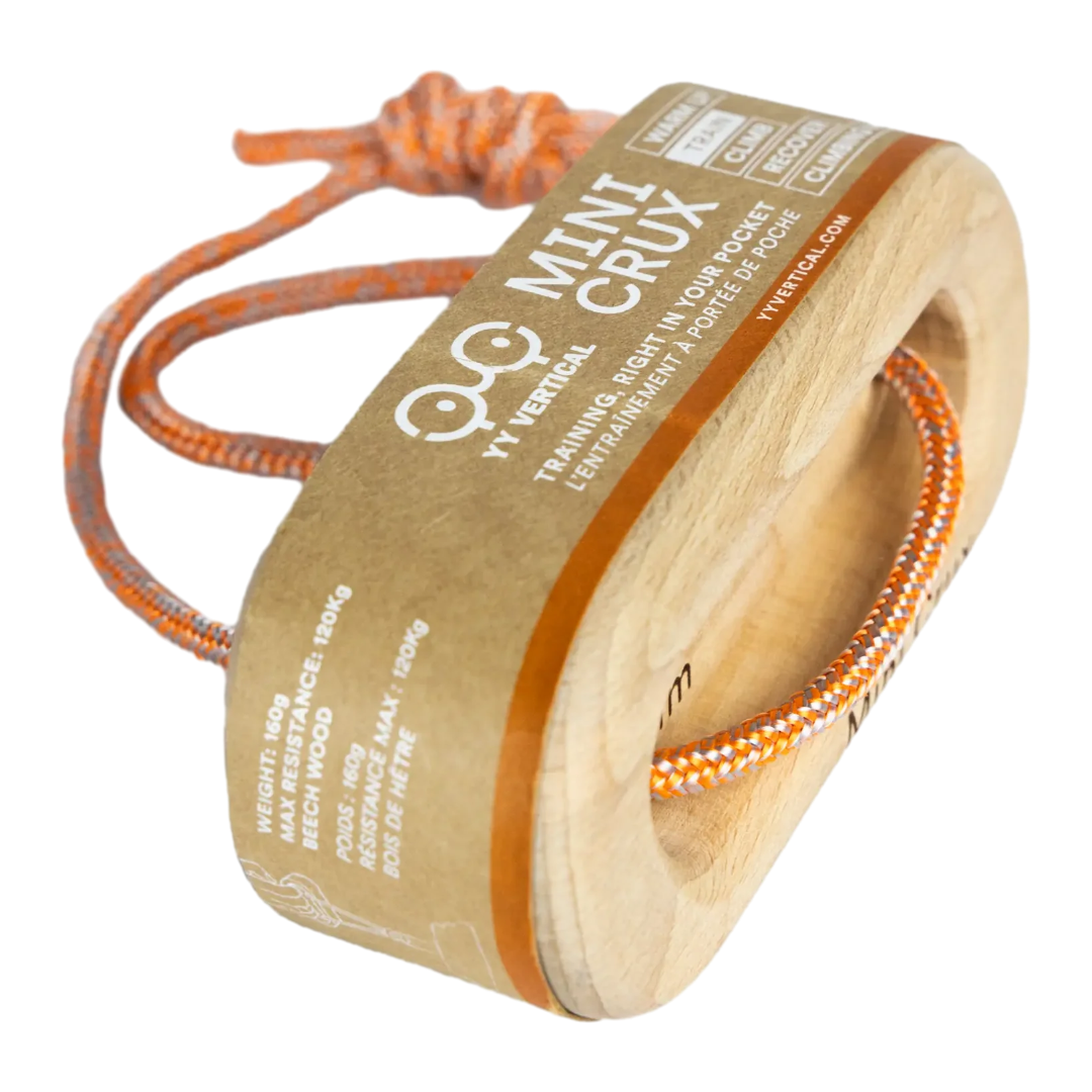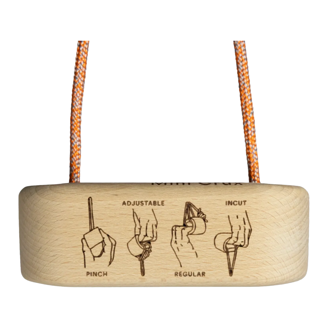 Mini Crux è l’attrezzo nomade minimalista pensato per l’allenamento delle dita. Con le sue 5 prese essenziali (da 10 a 25 mm + pinza) e 4 tipi di impugnatura diversi, può essere utilizzato per il riscaldamento o l’allenamento a terra, con pesi o elastici, senza bisogno di punti di ancoraggio. Ultra-leggero e compatto, sta in tasca e si porta ovunque. Perfetto per climber principianti e intermedi, è lo strumento semplice, tecnico e accessibile per allenare le dita in qualsiasi momento.