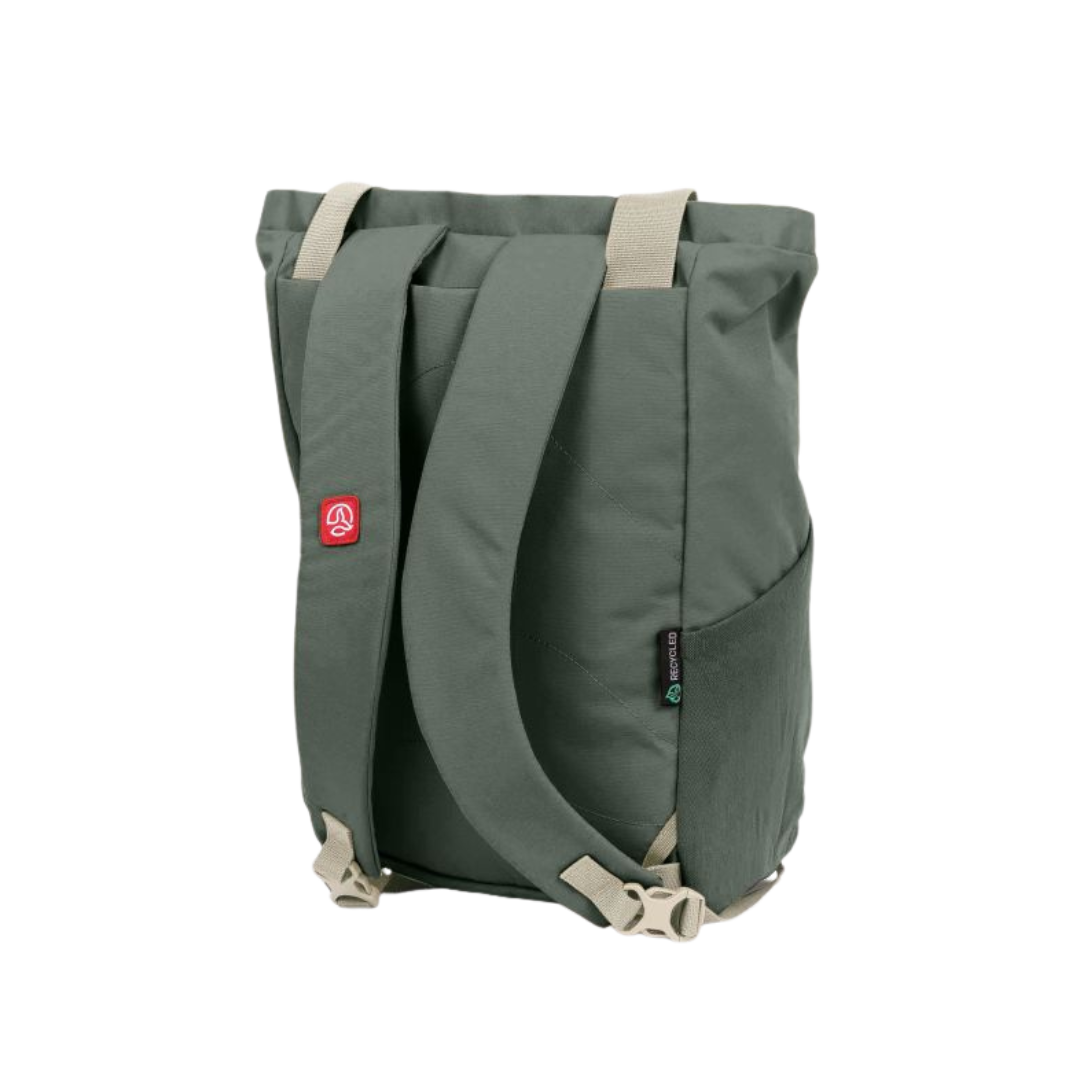 Questo versatile zaino/borsa tote urbano è realizzato in poliestere riciclato. Comodo e leggero, con un'ampia capacità di carico, può essere utilizzato come borsa a mano o zaino per tutti i giorni grazie agli spallacci estraibili con un'ampia tasca nascosta sul retro. Le caratteristiche includono: un'apertura principale orizzontale con zip, un'ampia tasca frontale per riporre le maniglie di trasporto, tasche interne di sicurezza con vari scomparti, uno scomparto imbottito per laptop/tablet, una maniglia per il trasporto, una tasca frontale diagonale con zip, tasche laterali con tessuto elastico, uno schienale imbottito con logo Ternua e spallacci imbottiti con una tasca portaoggetti nascosta.